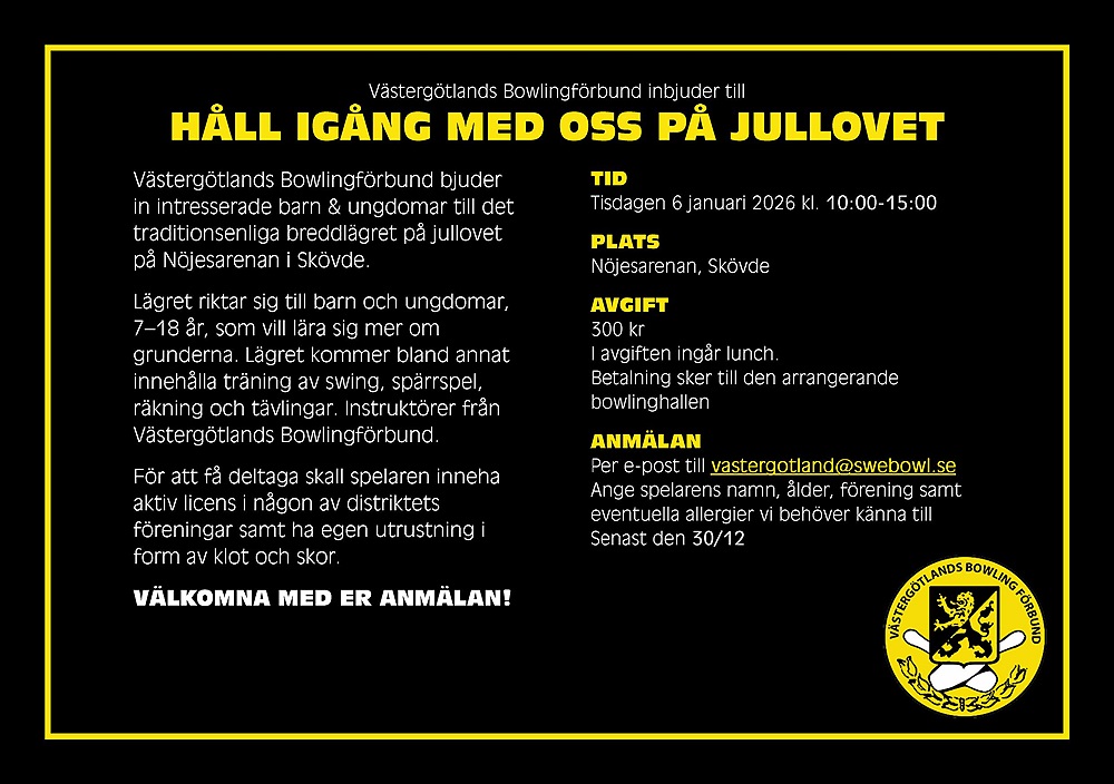 Anmälan sker per e-post till vastergotland@swebowl.se och lägret har maximalt plats för 16 spelare.